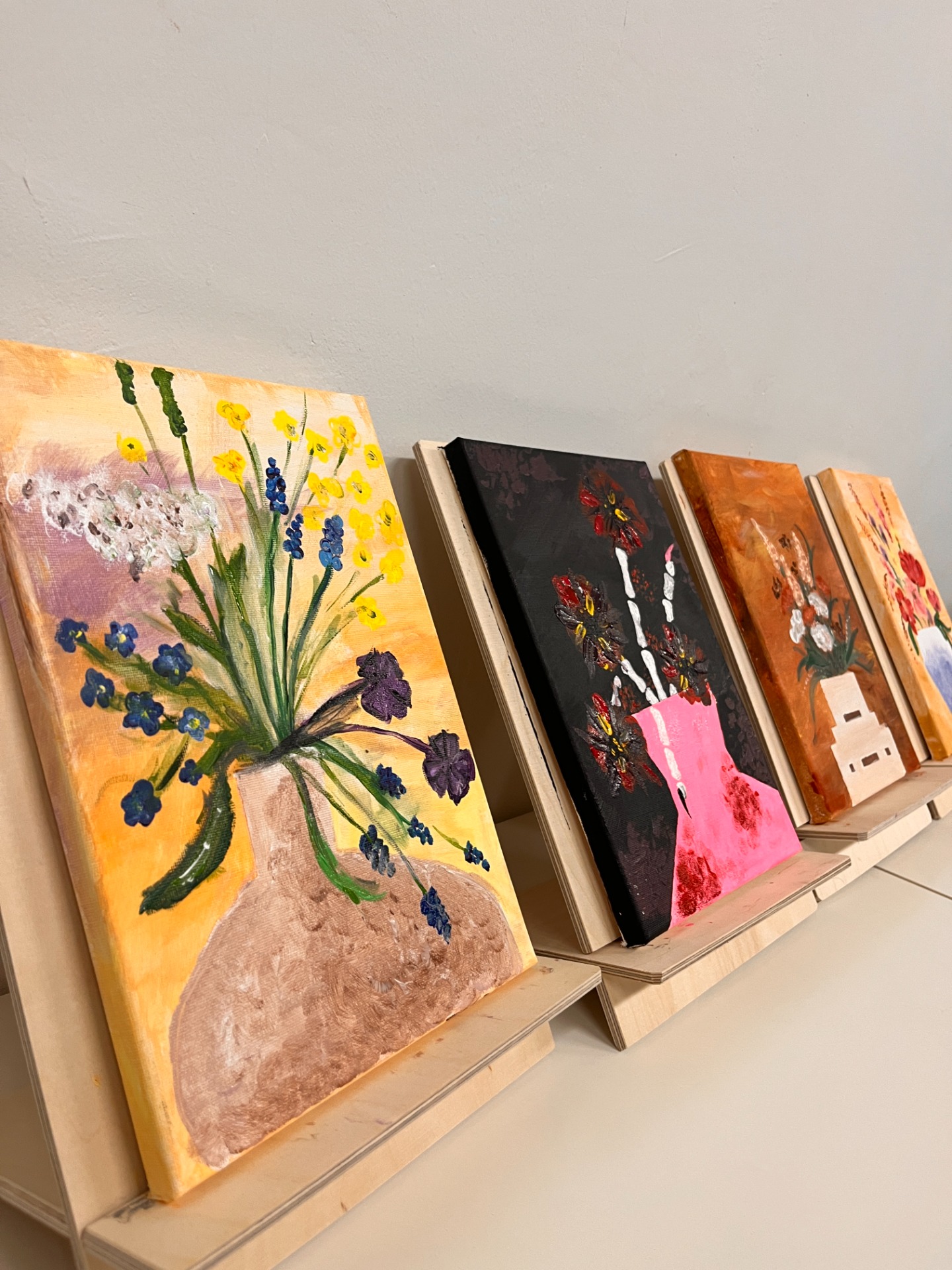 "Rento tunnelma täytti koulun ruokalan ja luovuus kukoisti 😅 tyhjät taulupohjat saivat väriä pintaan ja samasta aiheesta syntyi niin erilaisia upeita taideteoksia 🤩."